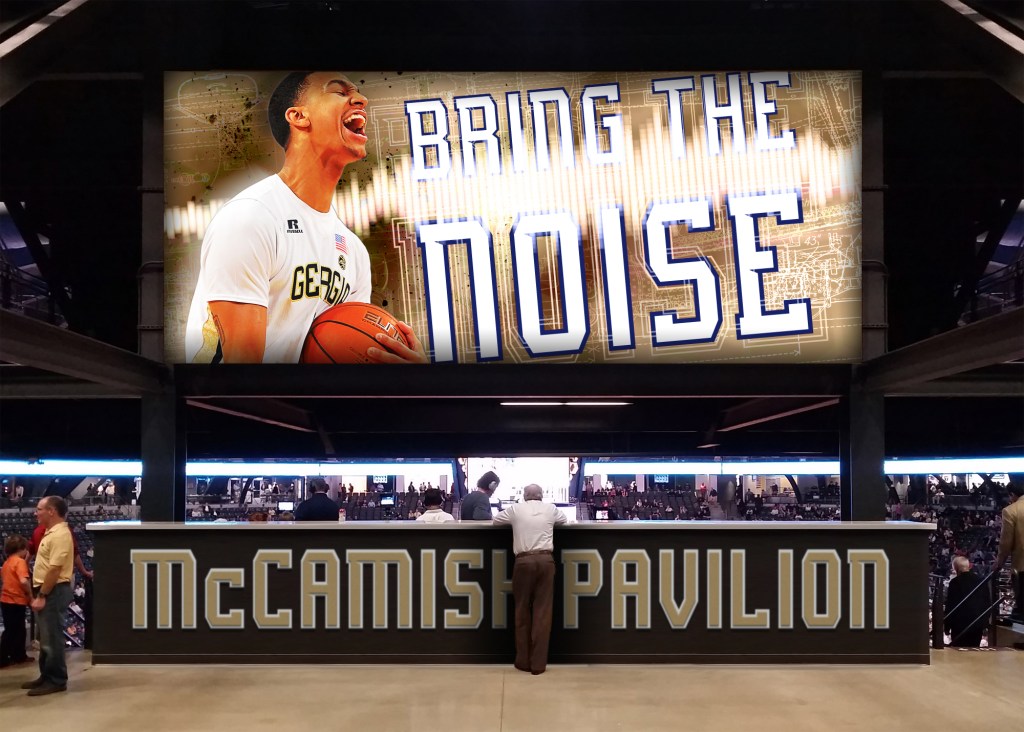 This is the large (currently underused) graphic that would greet fans just inside the main doors of McCamish Pavilion. Also included are over-sized signage to further emphasize the home-court advantage, and provide a photo opportunity for fans.